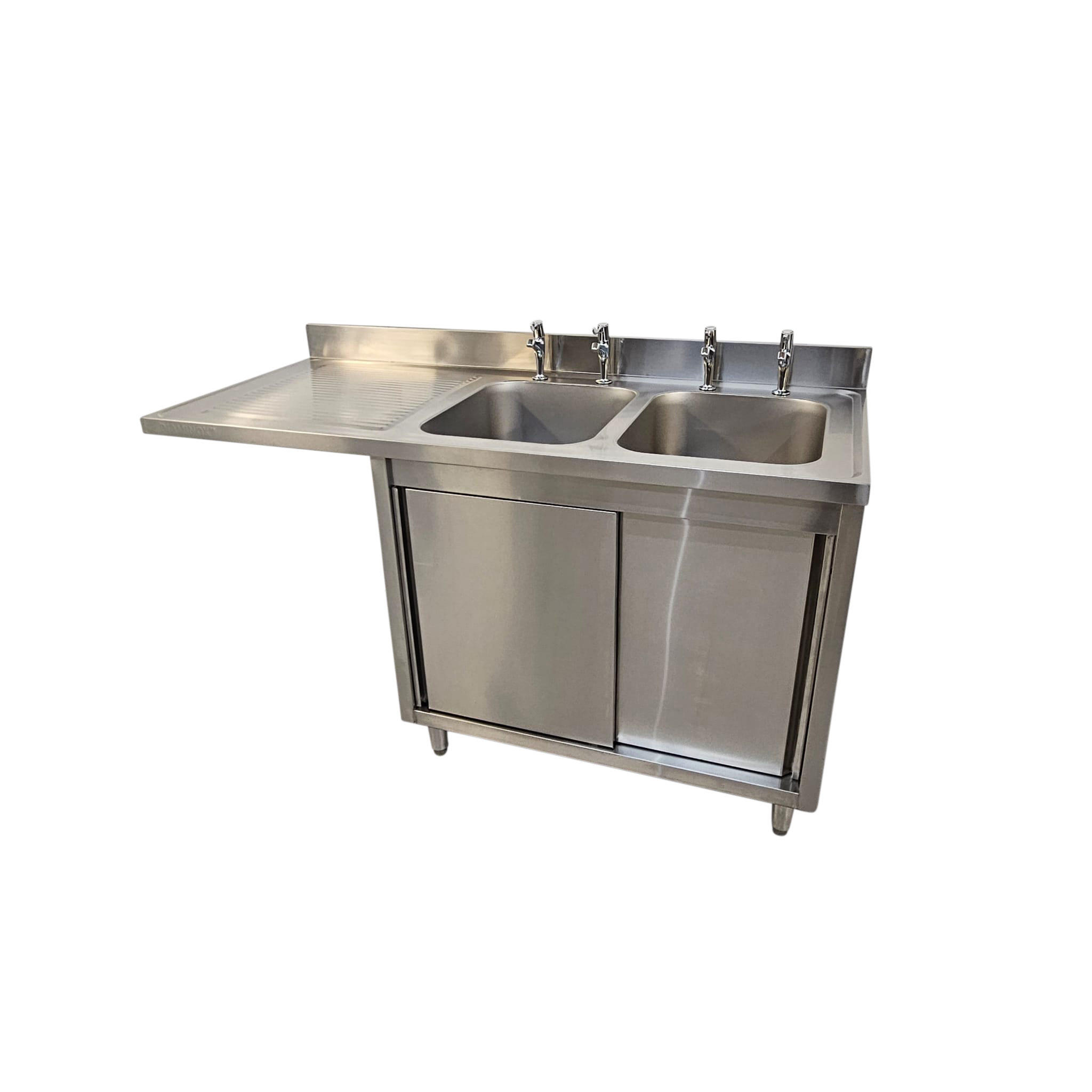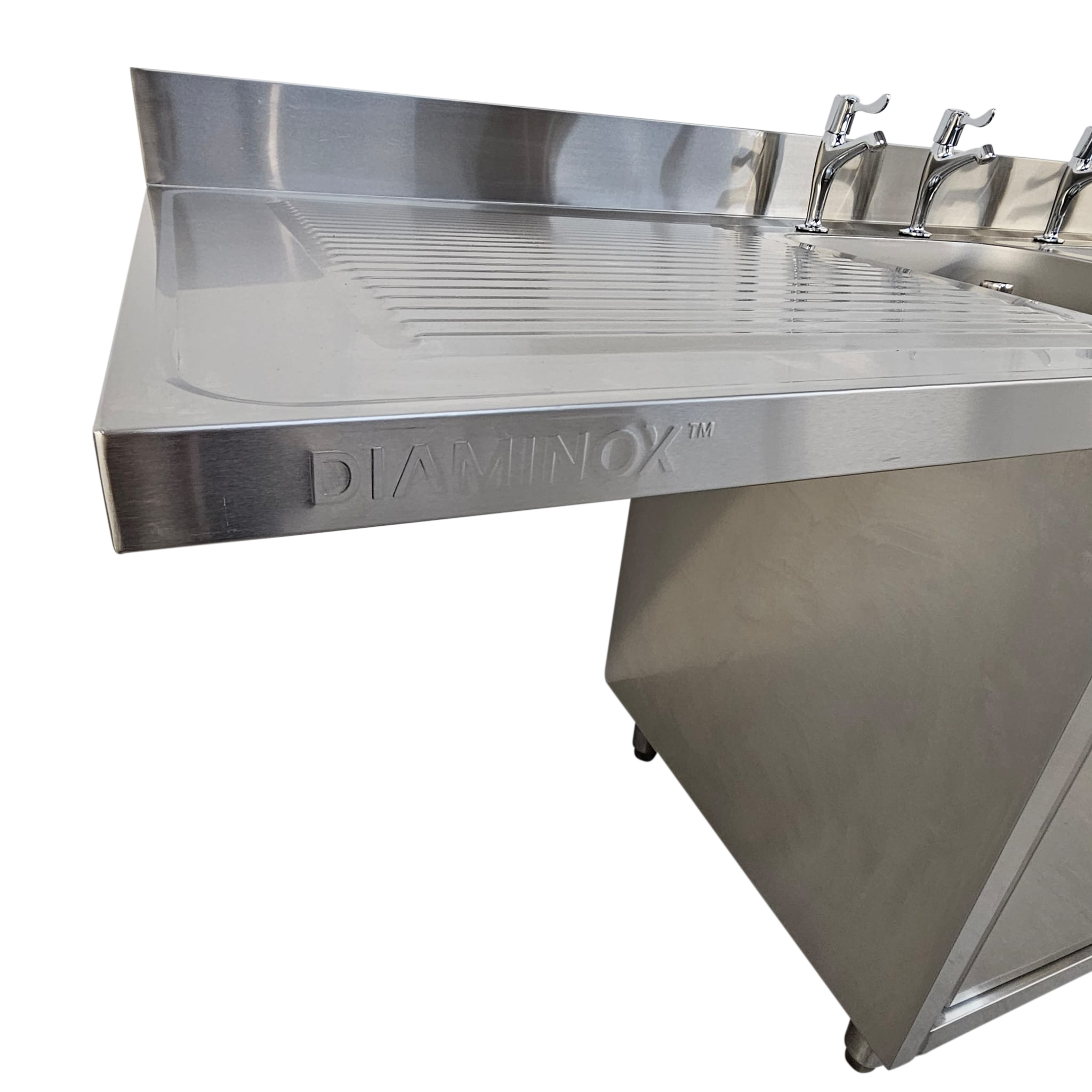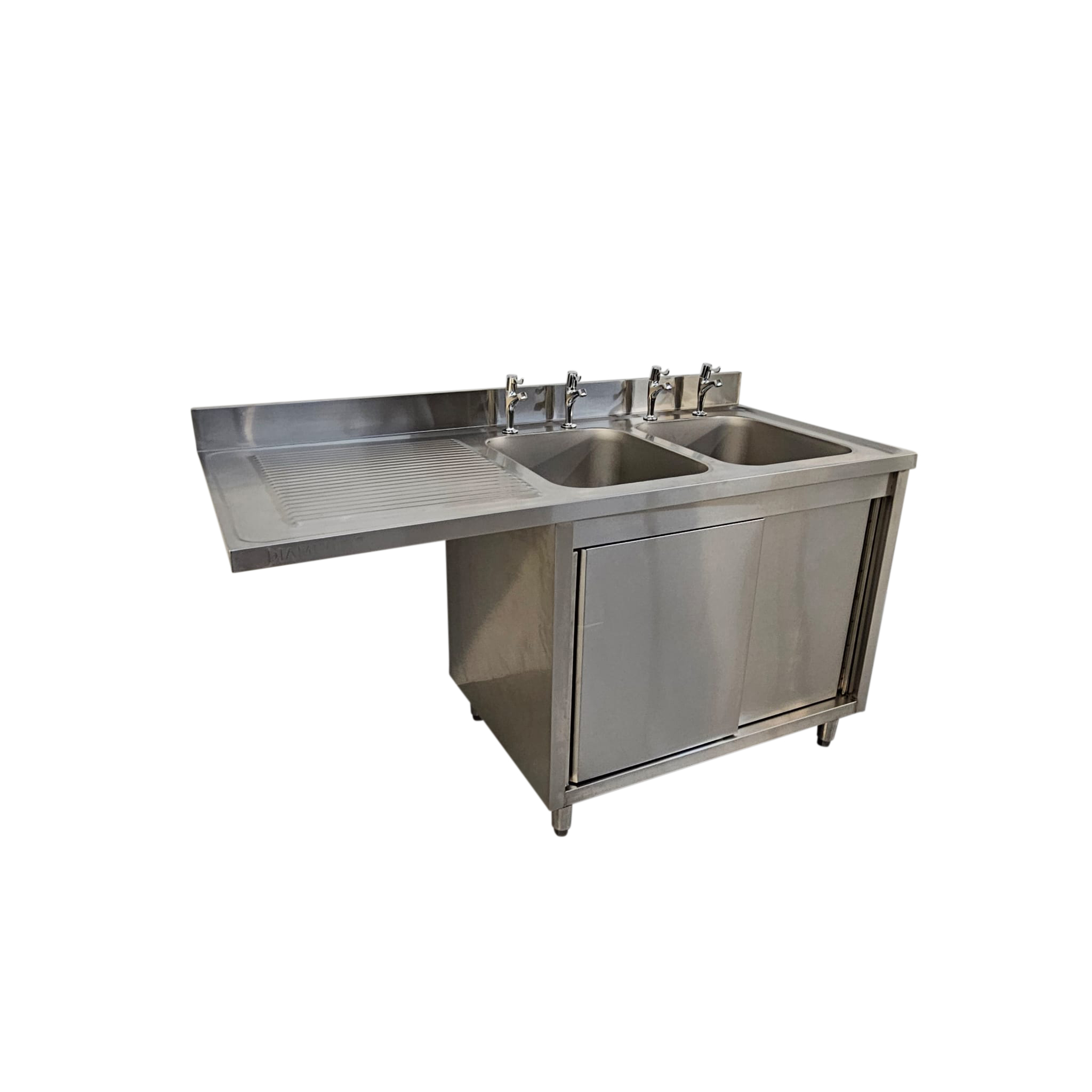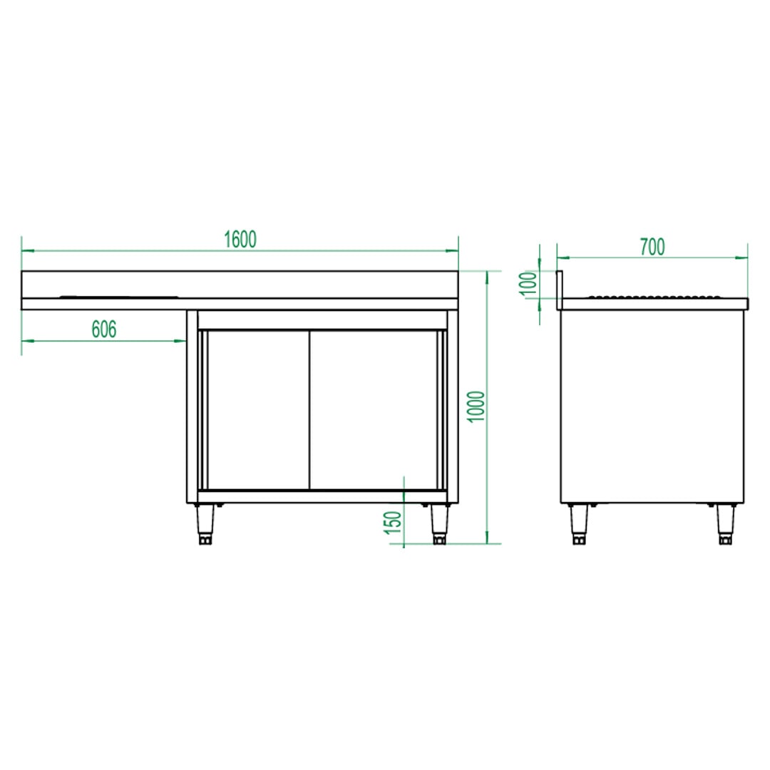 Meet all your cleaning needs with the Diaminox DS160LC double bowl dishwasher sink. The sink is constructed using a premium stainless steel material that is highly durable and easy to clean after use, saving you money on replacements as well as time spent on cleaning and maintenance. The sink features 2 right hand bowls with a cupboard below, perfect for storing cleaning products out of sight. Below the sink is space to accommodate any 60cm wide and 86cm high glasswasher/dishwasher. The Diaminox DS160LC is the perfect addition to demanding professional kitchens and is designed to withstand daily heavy use.