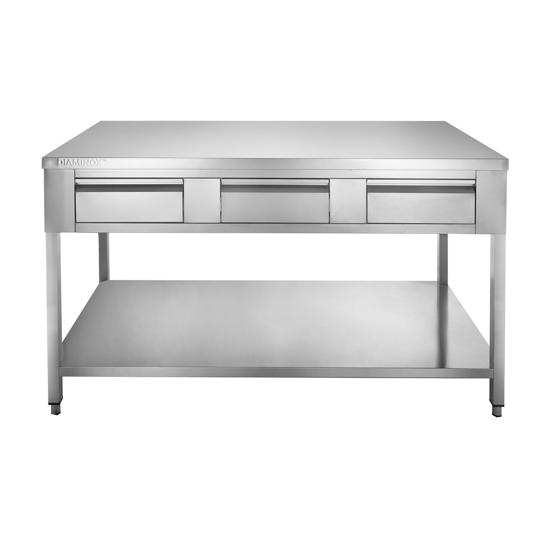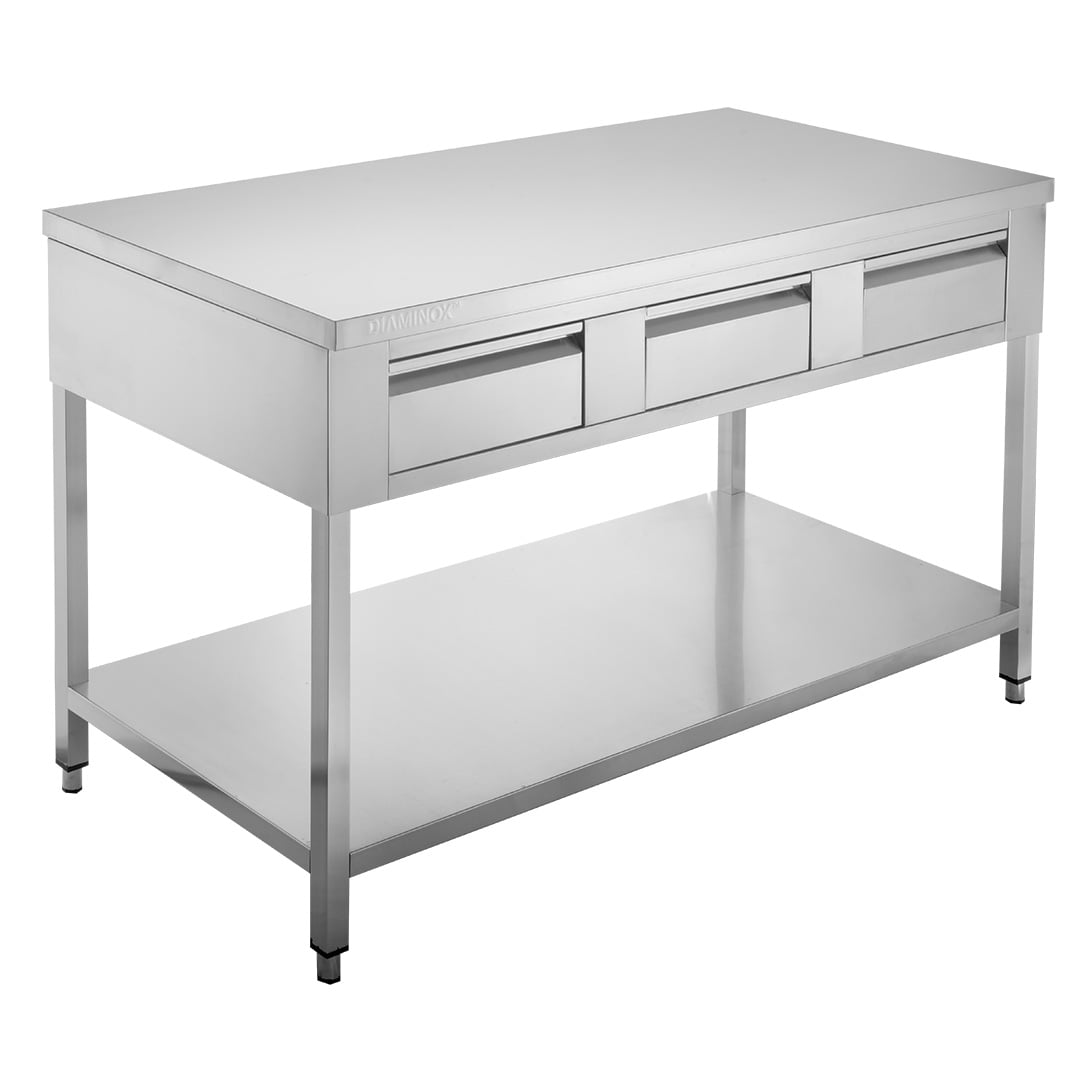 The Diaminox commercial stainless steel table is a robust and practical addition to any kitchen. Providing a sturdy and hygienic work surface with square legs for excellent stability while the undershelf offers convenient storage space for supplies or equipment.