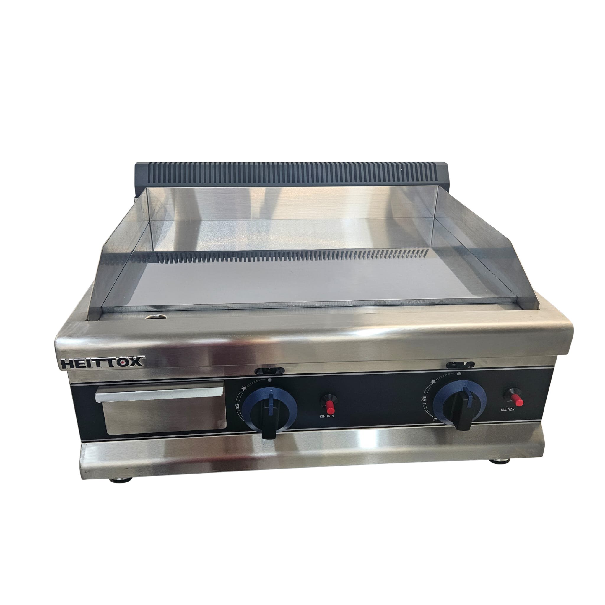 The Heittox heavy duty smooth chrome plate gas griddle is perfect for any kitchen. Constructed from high quality durable steel, this griddle offers great heat retention and distribution ensuring consistent and even cooking.