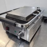 The Buffalo bistro single contact grill is a powerful and effective solution for professional caterers. With up to 1.5kW of cooking performance, creating deliciously tempting panini, burgers, steaks and skewers is made fast and easy. The ultra heavy duty cast iron grill plates are perfect for everyday use and are the ideal non-stick cooking surface when seasoned. Simple to use, clean and maintain.