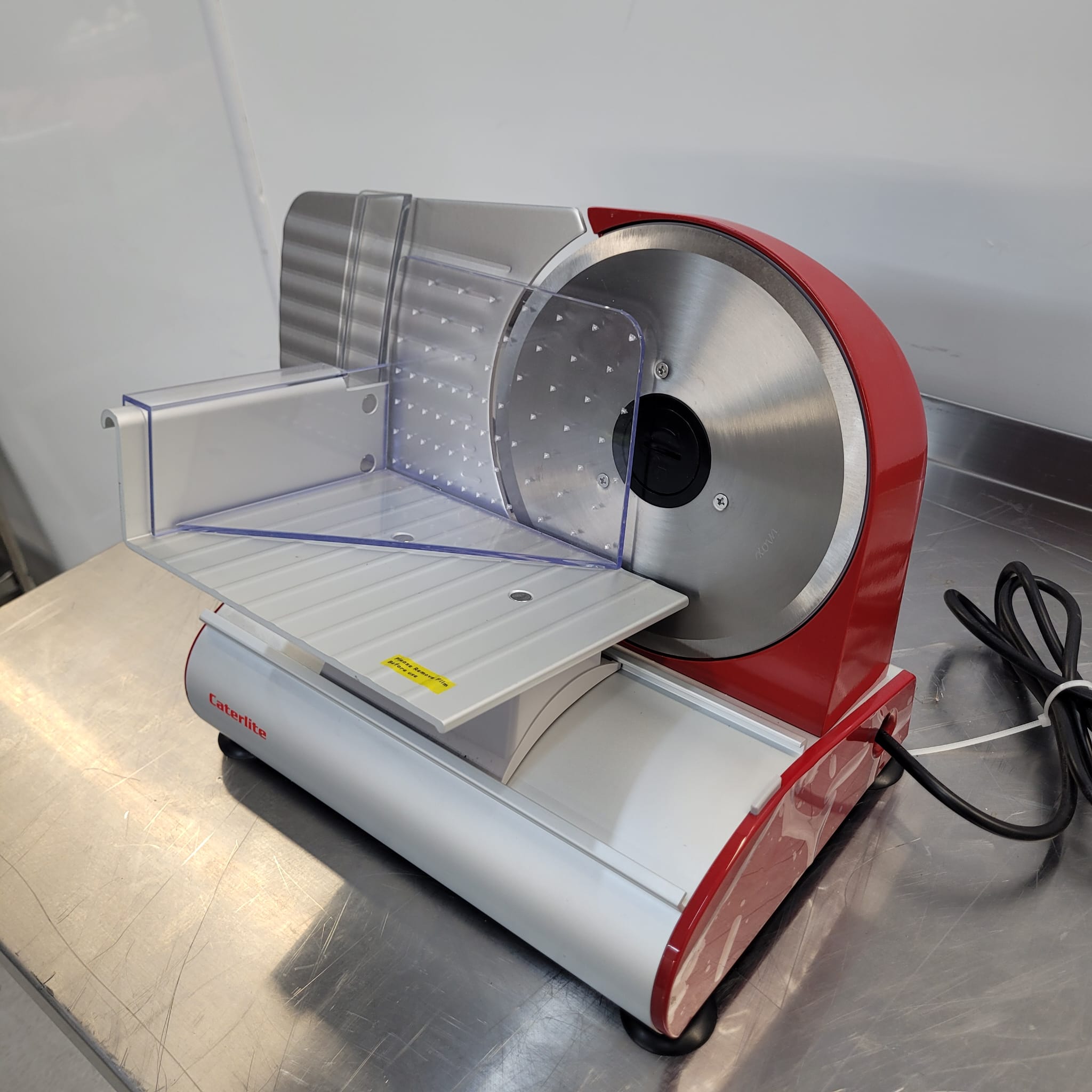 Thanks to adjustable slice control, the Caterlite helps reduce waste whilst also ensuring great portion control. The integrated food press (with teeth) ensures food is kept firmly in place during the slicing process, providing controlled, safe slicing every time. And once you’re all done, the whole machine is simple to clean, ready for the next use. Not suitable for slicing cheese or bones.
