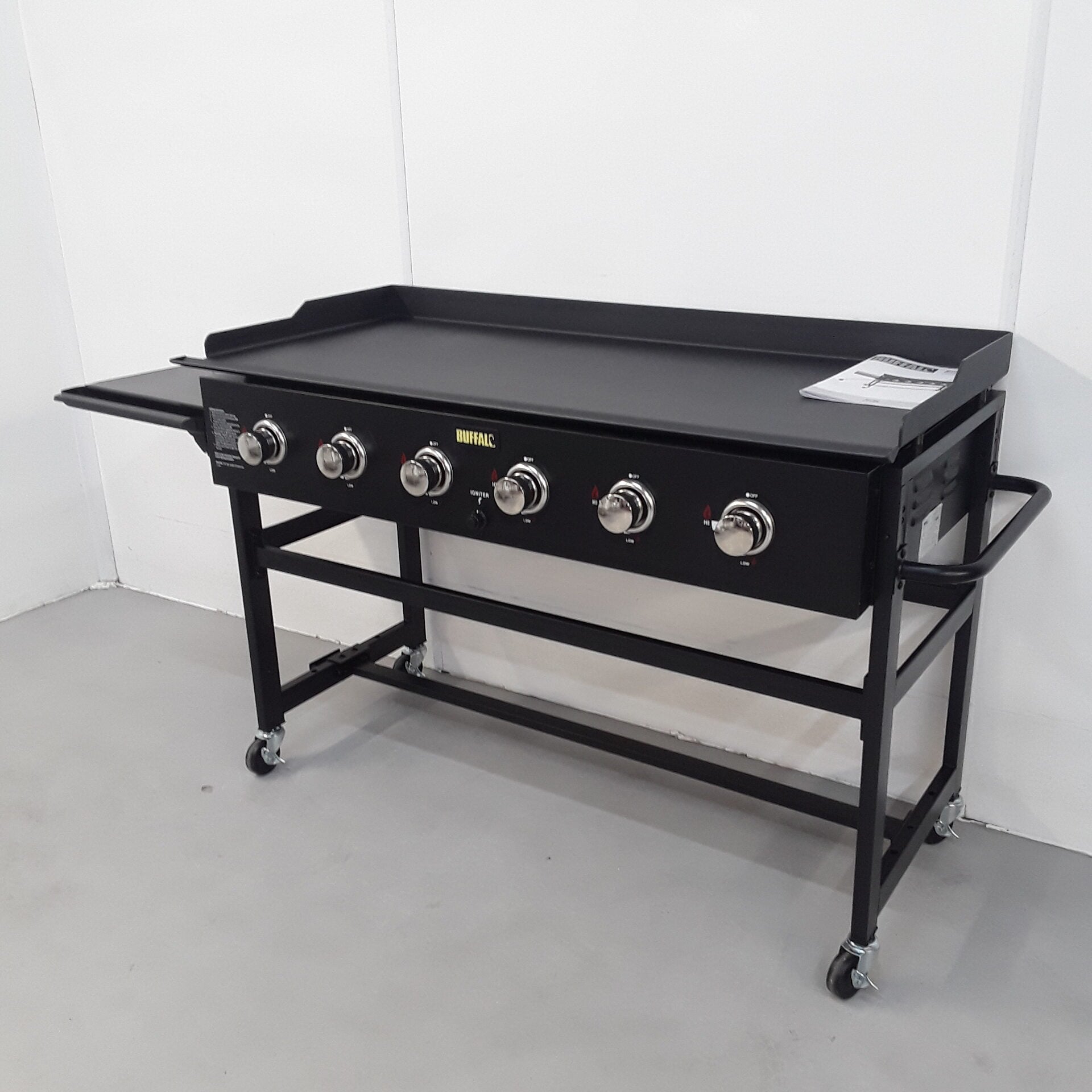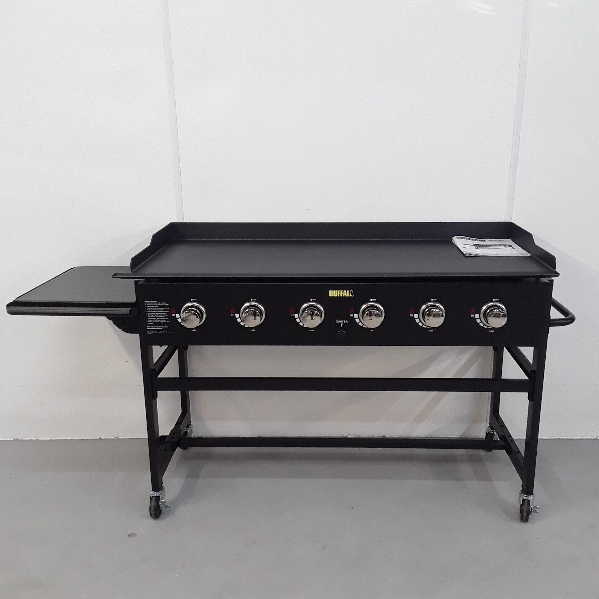 Large, powerful and incredibly versatile, the Buffalo six burner BBQ griddle gives you more than enough cooking capacity for busy events and services. With its impressive 1270x520mm cooking surface, there’s plenty of space for favourites such as burgers, bacon, eggs and vegetables.