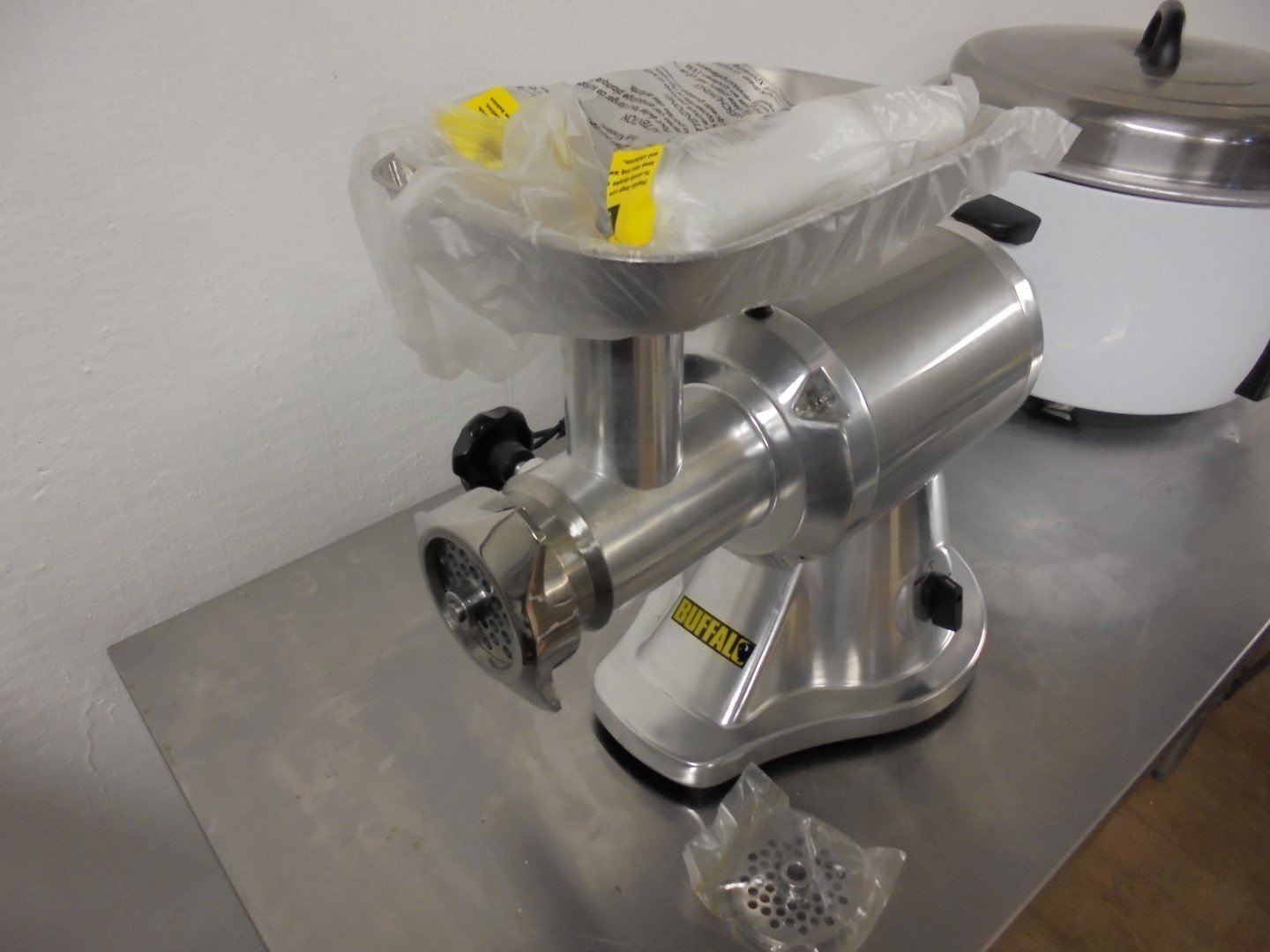 New B Grade Buffalo CD400 mincer. 13 amp electric. Comes with 2 discs.