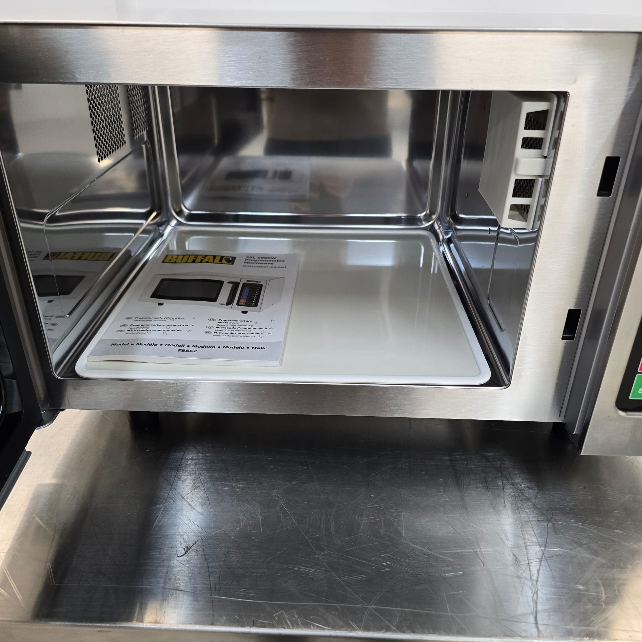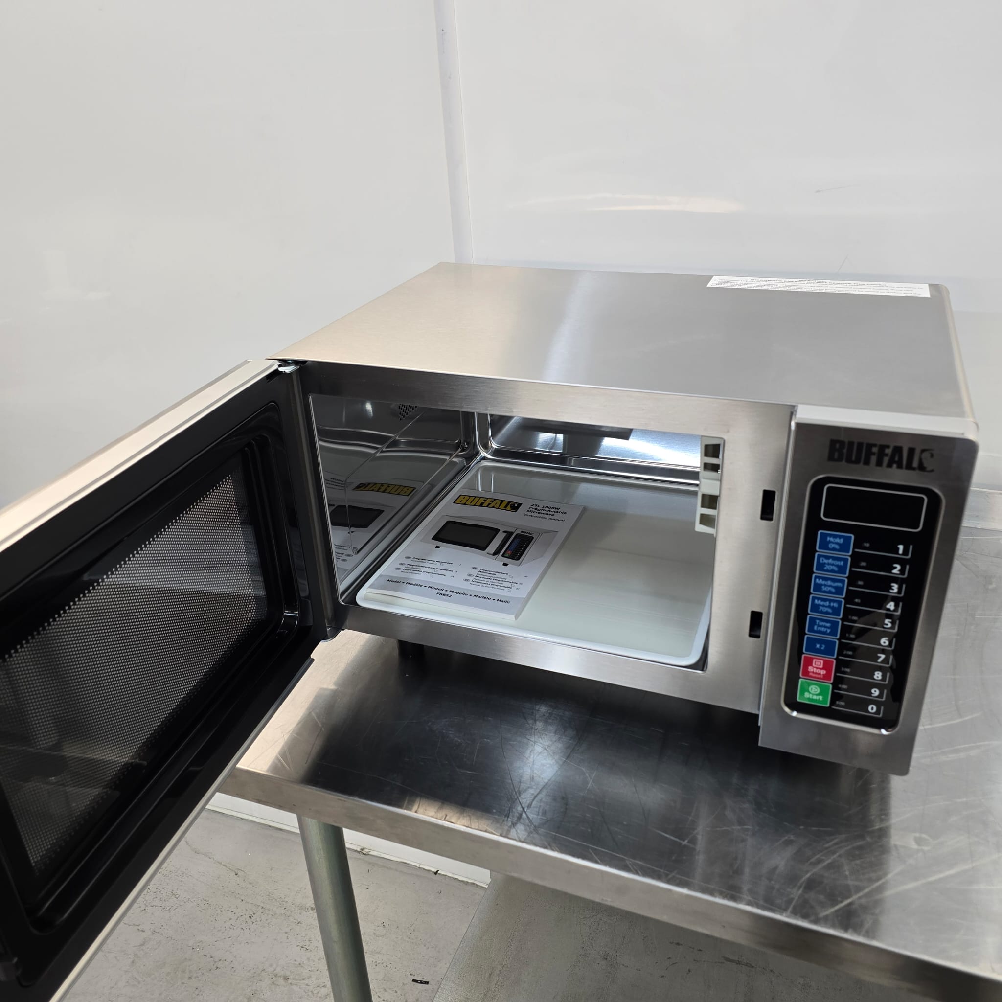 With this programmable microwave from Buffalo, you can speed up your cooking, reheating, or defrosting tasks. The sizable 25-litre capacity provides ample space for whole plates of food or smaller gastro containers, making it a superb commercial-grade microwave for everyday professional or home kitchen use.