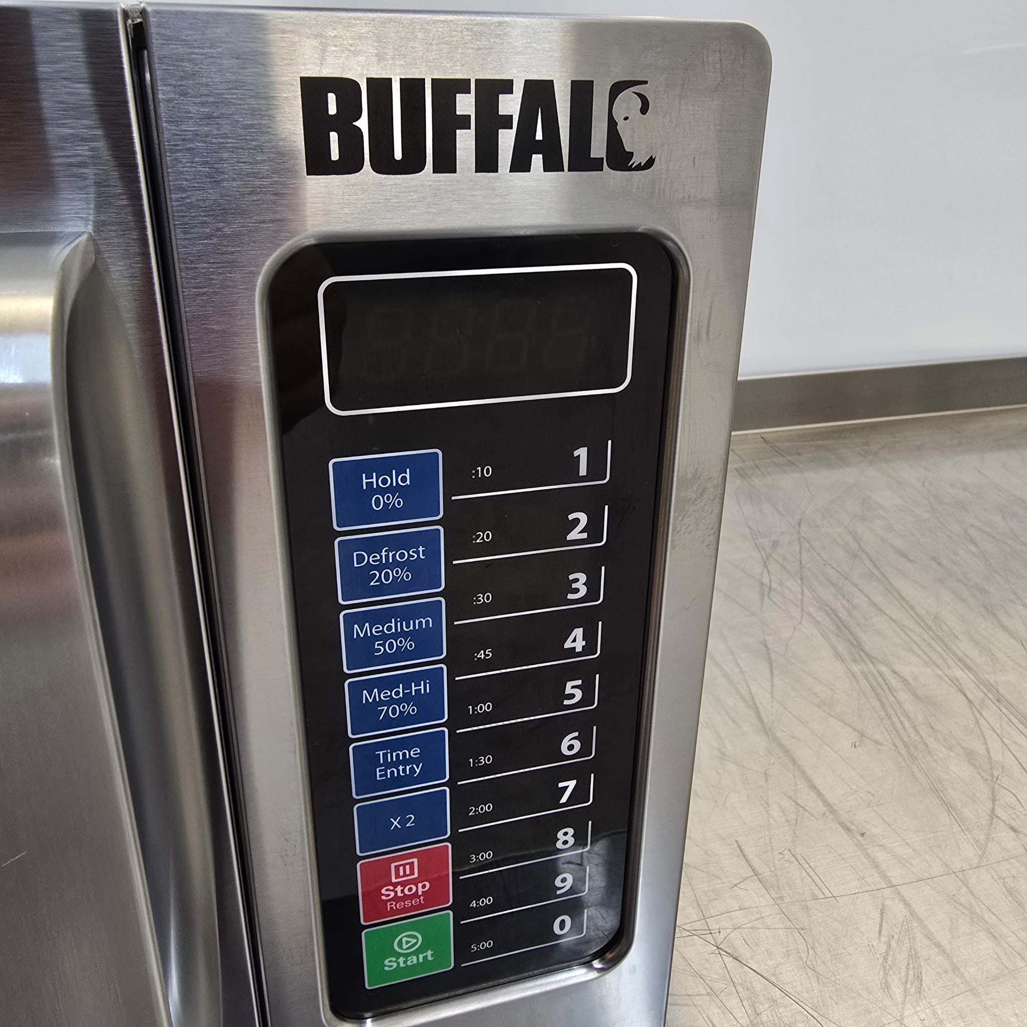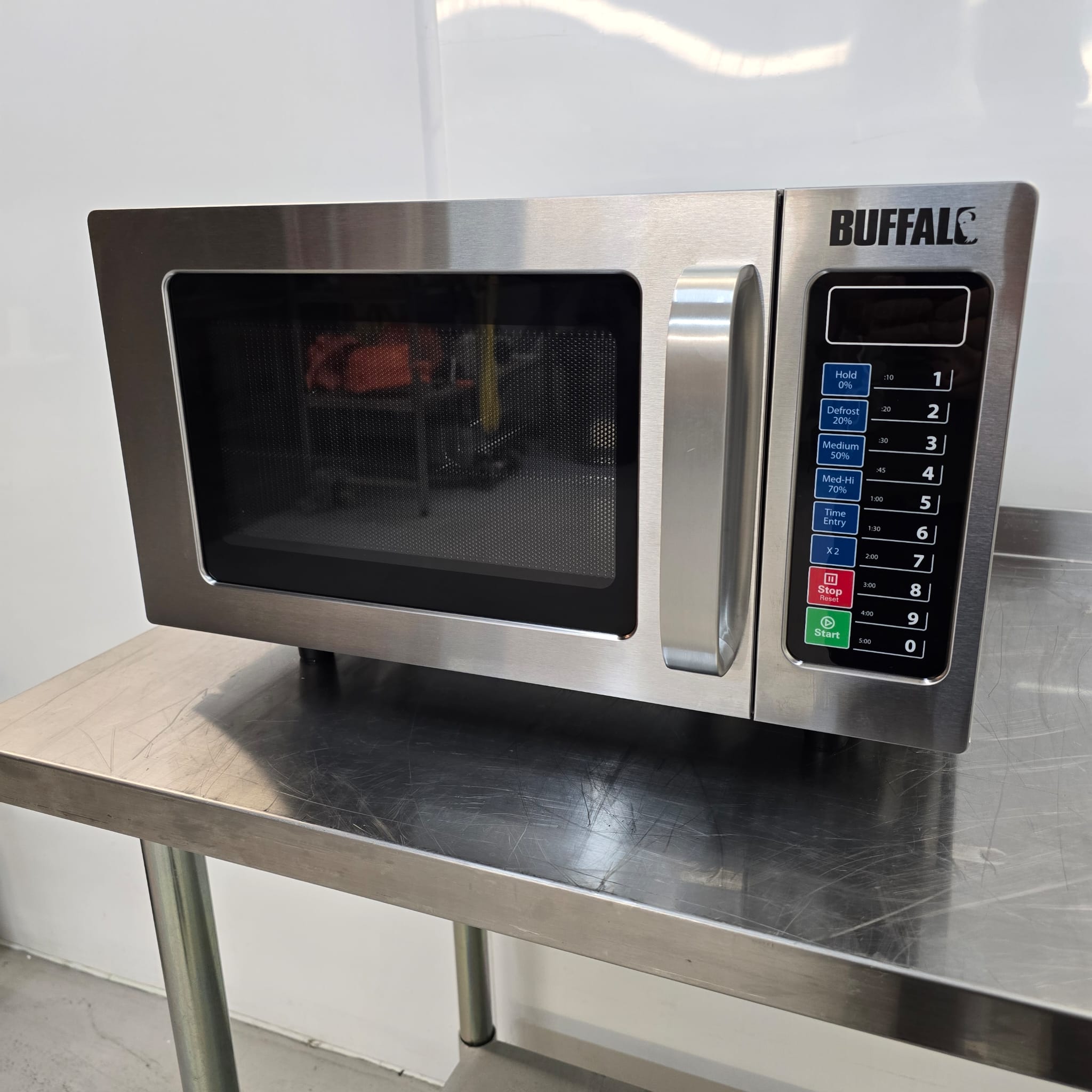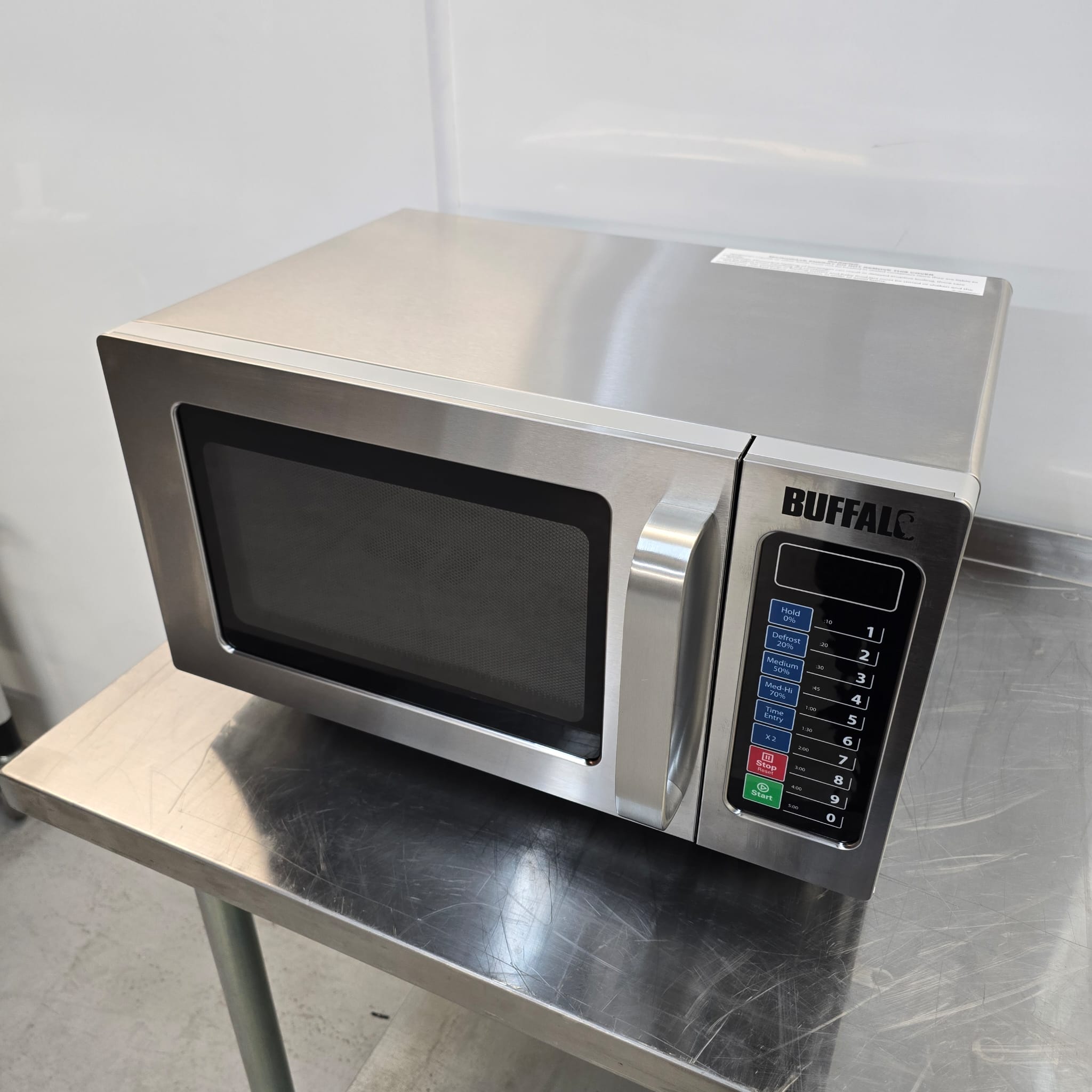 Housed in robust stainless steel, the Buffalo microwave can withstand the demands of any busy commercial kitchen. A 1000W power output means you can quickly and efficiently heat or cook a wide variety of dishes. There are also 5 power levels and 3-stage cooking options available, allowing you to customise the cooking process.