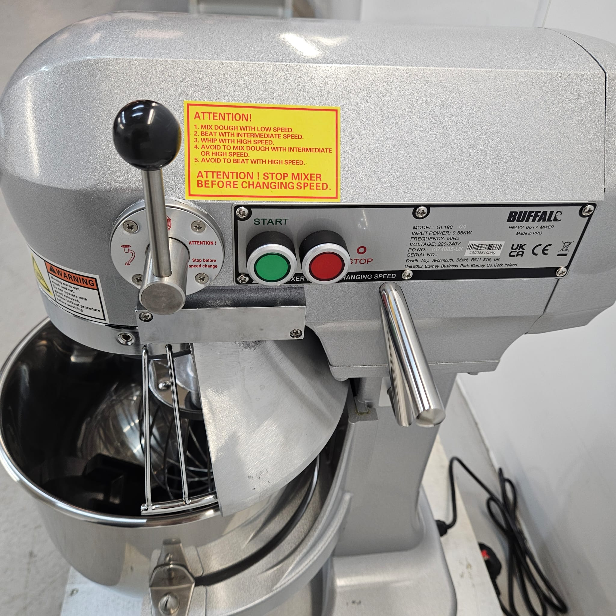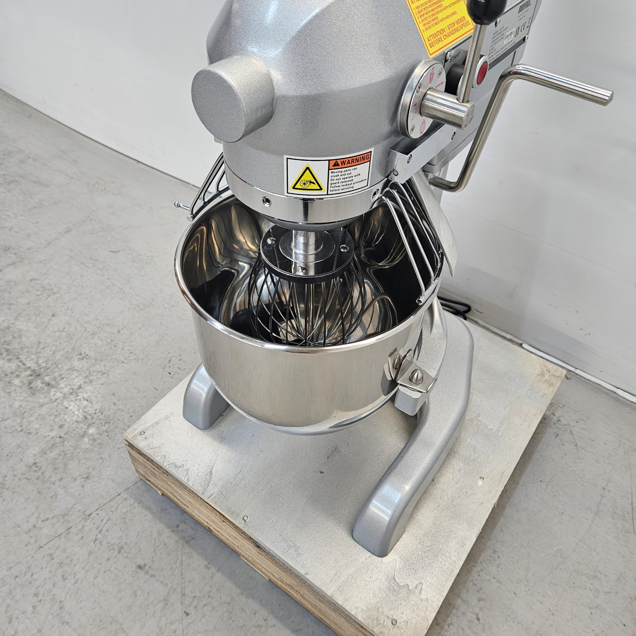 Once you’re finished mixing, the Buffalo planetary mixer is exceptionally easy to clean down. The bowl is dishwasher/utensil washer safe, as are all the mixing attachments. The machine itself is also easy to wipe down, ready for the next use.