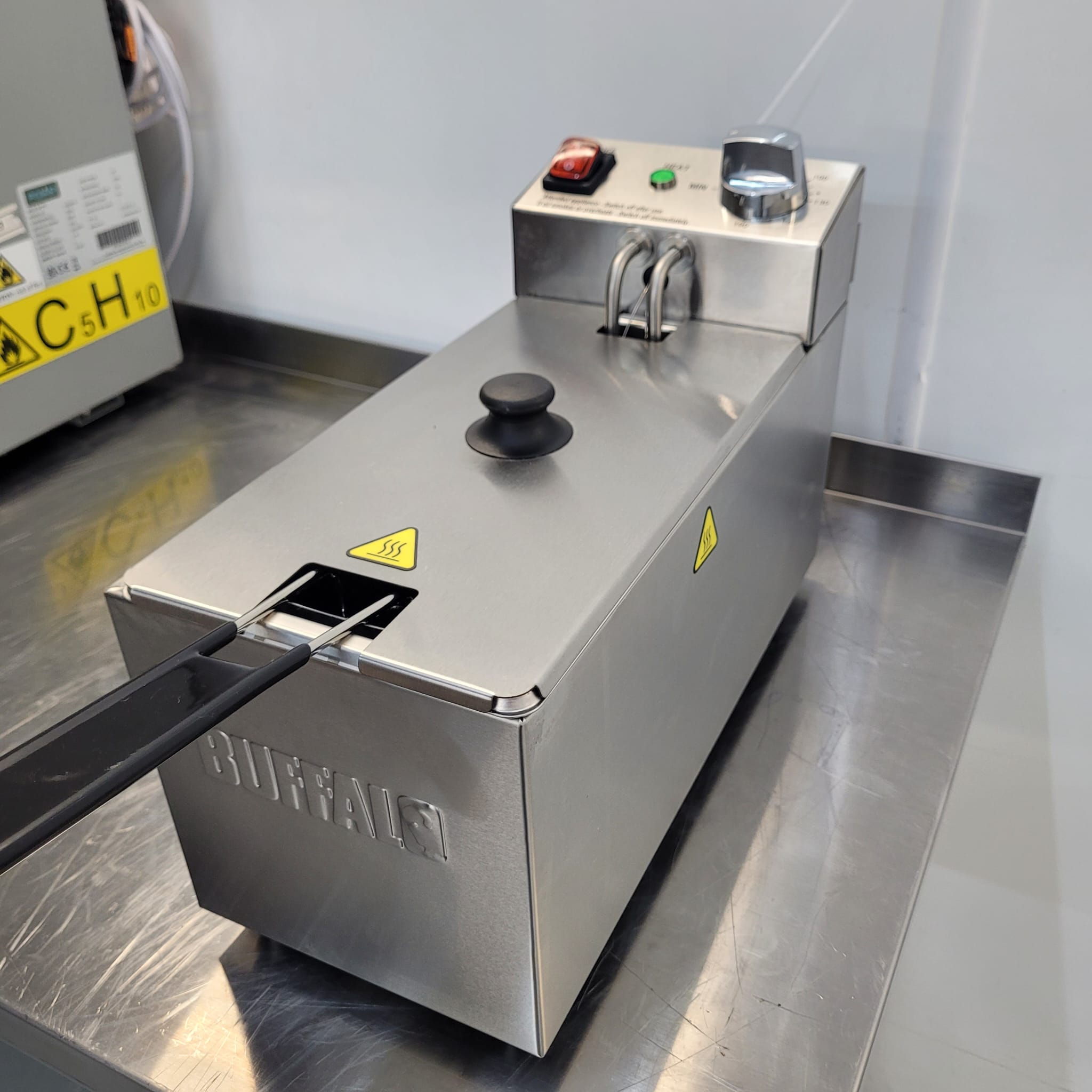 The Buffalo fryer features a strong, commercial stainless steel design which is not only highly durable – it’s also easy to clean as the whole fryer can be disassembled quickly. The fryer also includes a handy lid as standard – helping to extend the lifespan of the oil by protecting the pan whilst the fryer is not in use. And as the fryer is lightweight and compact, it’s a great choice for taking on the road for demo or pop-up cooking. Its compact size also makes it easy to store away when required.