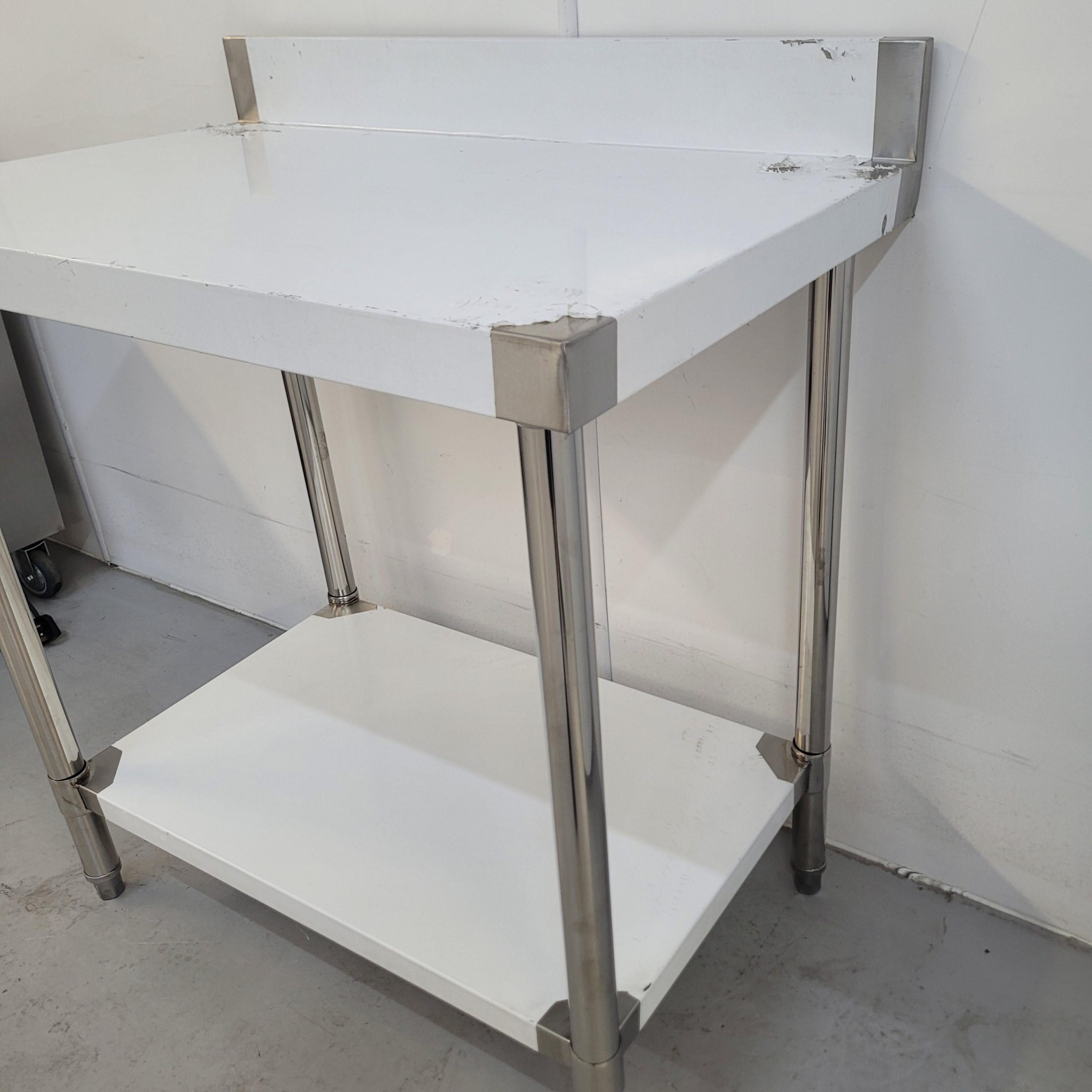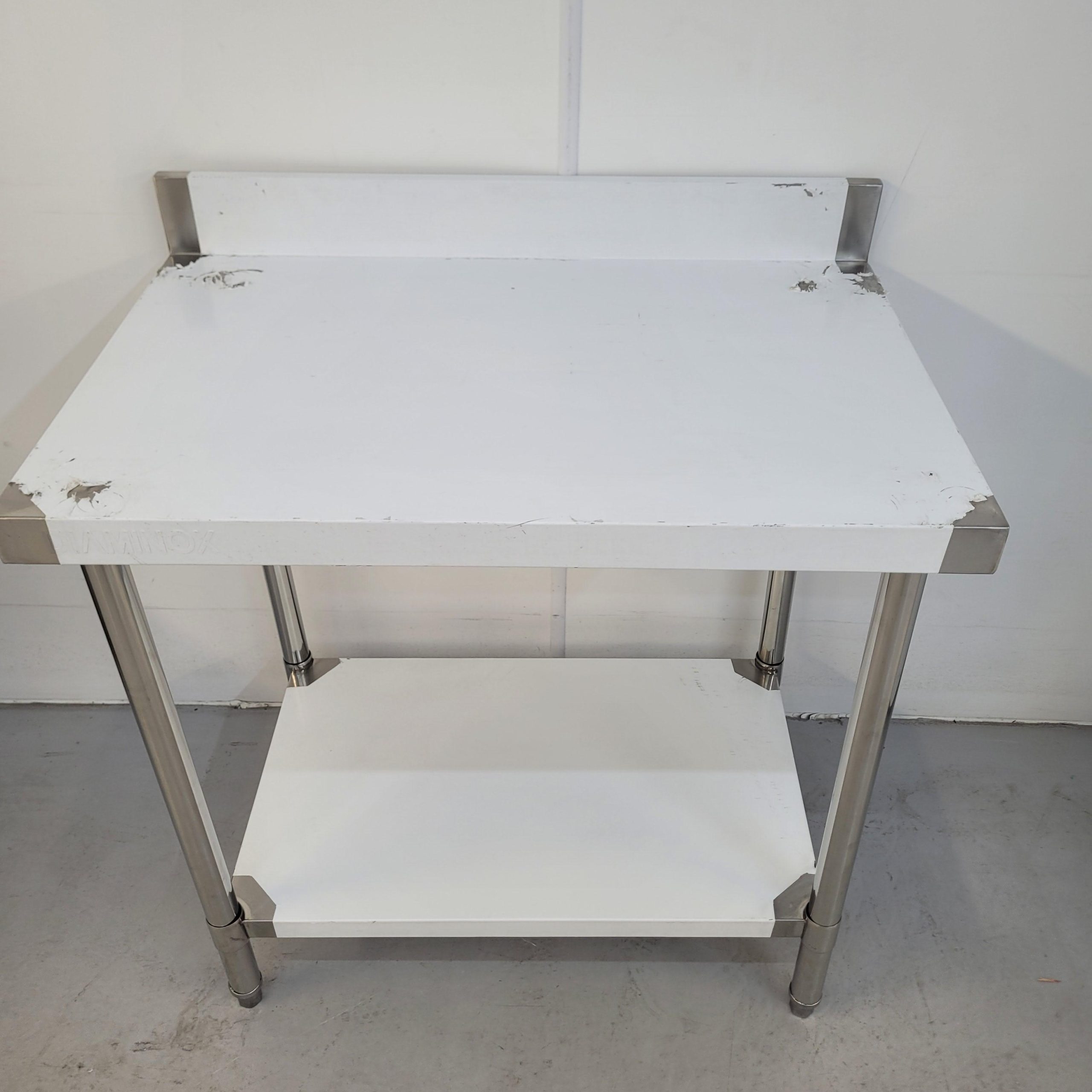 On top, the stainless steel surface is perfect for prepping food. Below, a Stainless steel undershelves provide a solid and dependable platform to store equipment and small appliances. The table is easy to assemble, and even easier to keep clean. It comes with four feet, but castor wheels are available separately (30326) if required.