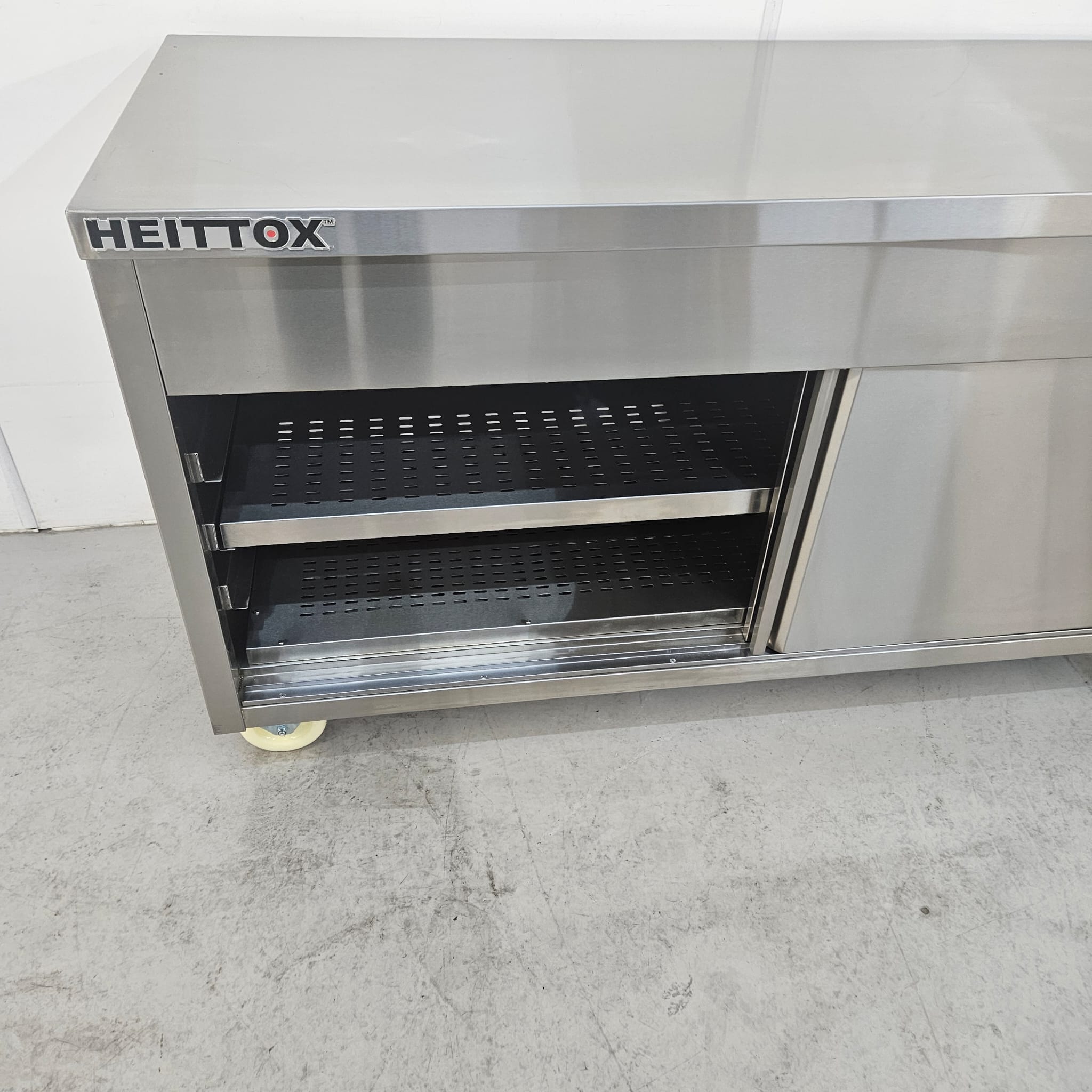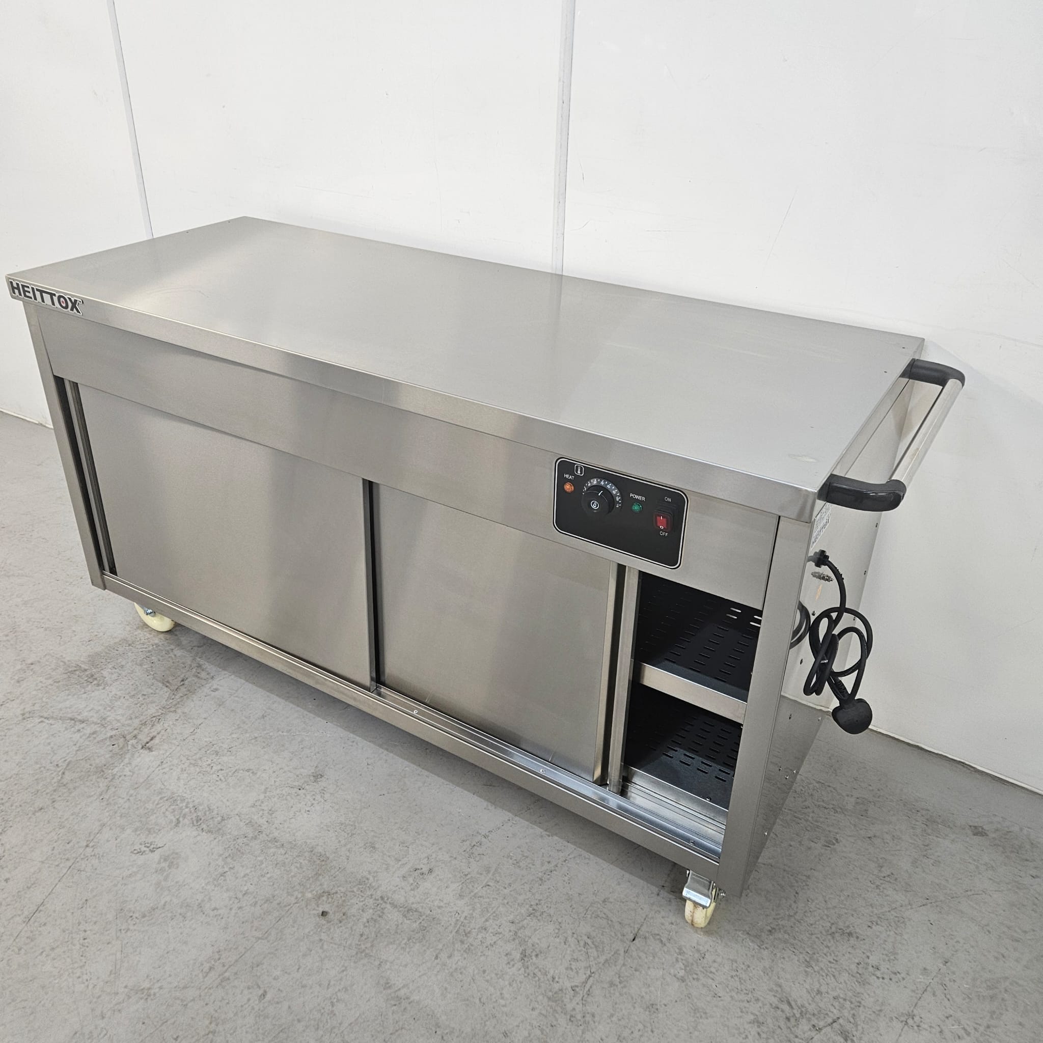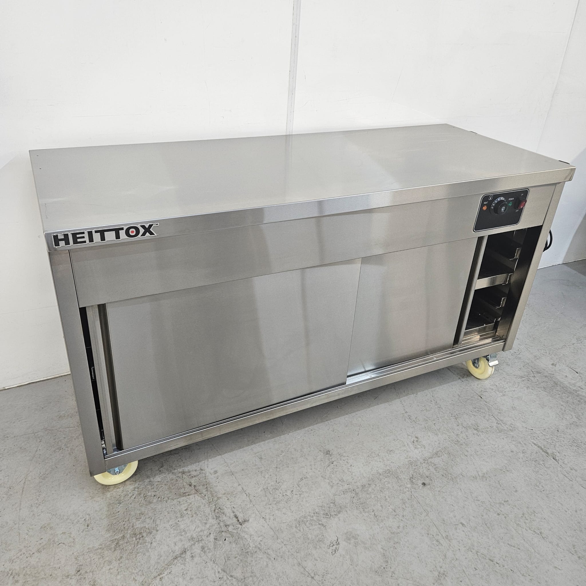 The Heittox hot cupboard is an essential addition to any dynamic commercial kitchen. It is built using superior quality stainless steel, ensuring durability and longevity. Equipped with robust stainless steel sliding doors, this warming cupboard offers easy access, while its lockable castors ensure effortless mobility.