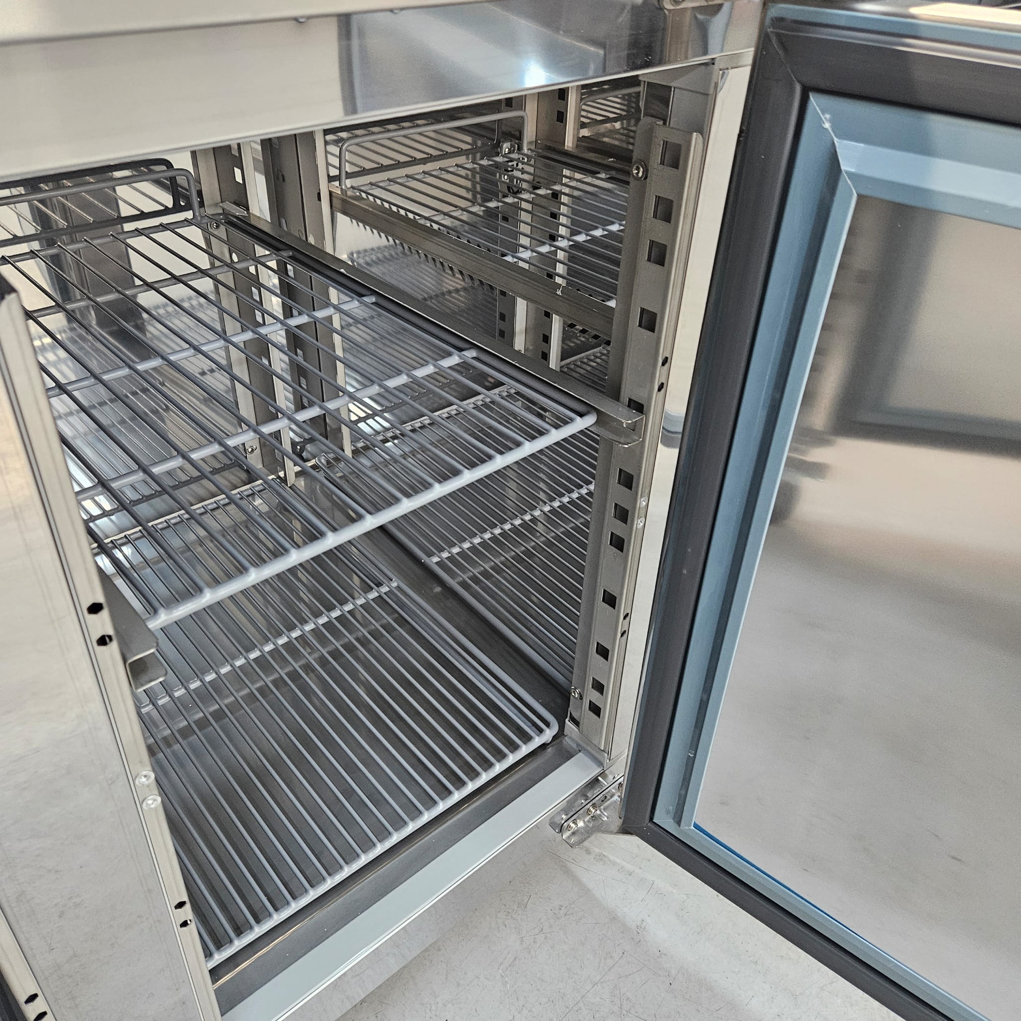 Sturdy adjustable shelves ensure there’s plenty of flexibility, so you can organise your food efficiently for rapid access. For further convenience, the freezer features handy self-closing doors (from 90°) and a solid commercial easy-clean design – perfect for saving time at the end of a busy shift.