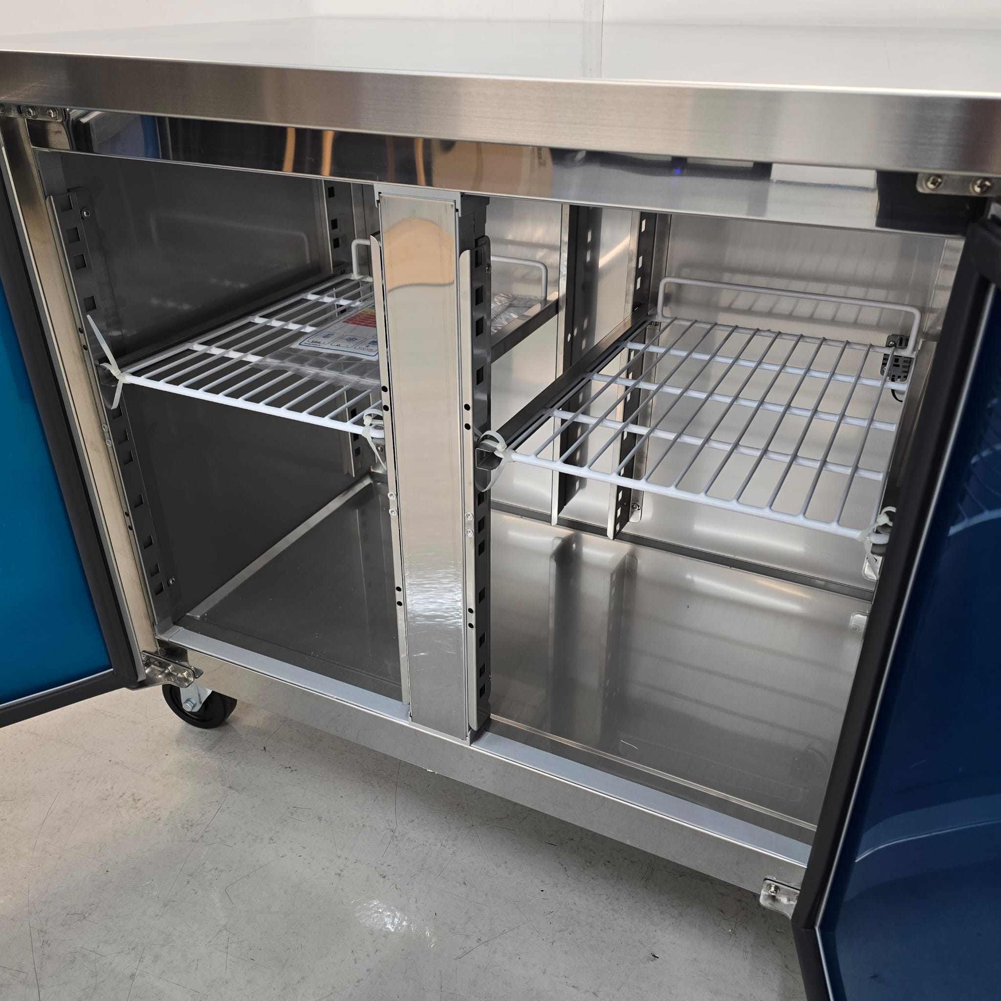 The Tefcold SK6210 double door counter fridge is a high capacity food storage and worktop combination, specifically designed for reliability and flexibility in busy professional kitchens. Highly efficient with B-grade energy rating, the Tefcold counter has self-closing doors fitted as standard which help to bring running costs down. The counter fridge features ventilated cooling and automatic defrost.