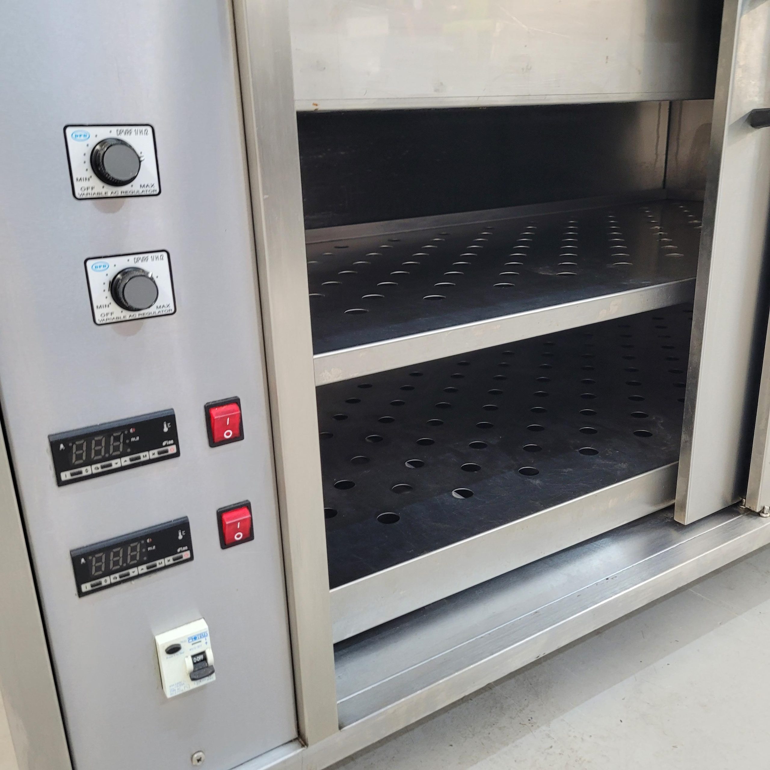 Double sliding door hot cupboard with 2 x shelves